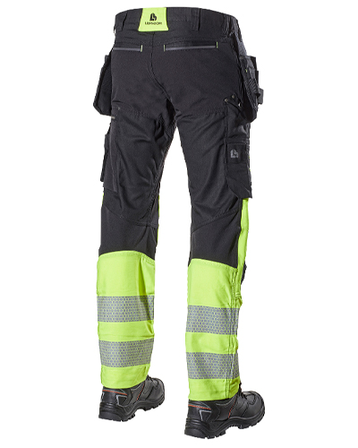 - Smalere passform ved hjelp av stretchpaneler samt stretch i hovedmaterialet gir en kroppsnær bukse med knebeskyttere som holder seg på plass.