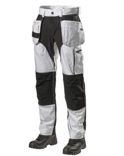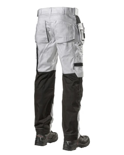 Lommer og holdere: Justerbare knelommer forsterket med stretchkevlar. Knebeskyttelsen forblir i rikitg posisjon og bidrar til god bevegelighet. To forsterkede hengelommer, hvor den høyre har ID-kortholder. Fire forlommer, to baklommer og en tommestokklomme. Lårlomme med glidelås, innvendig telefonlomme, og utvendig vinklet telefonlomme med magnetlås.